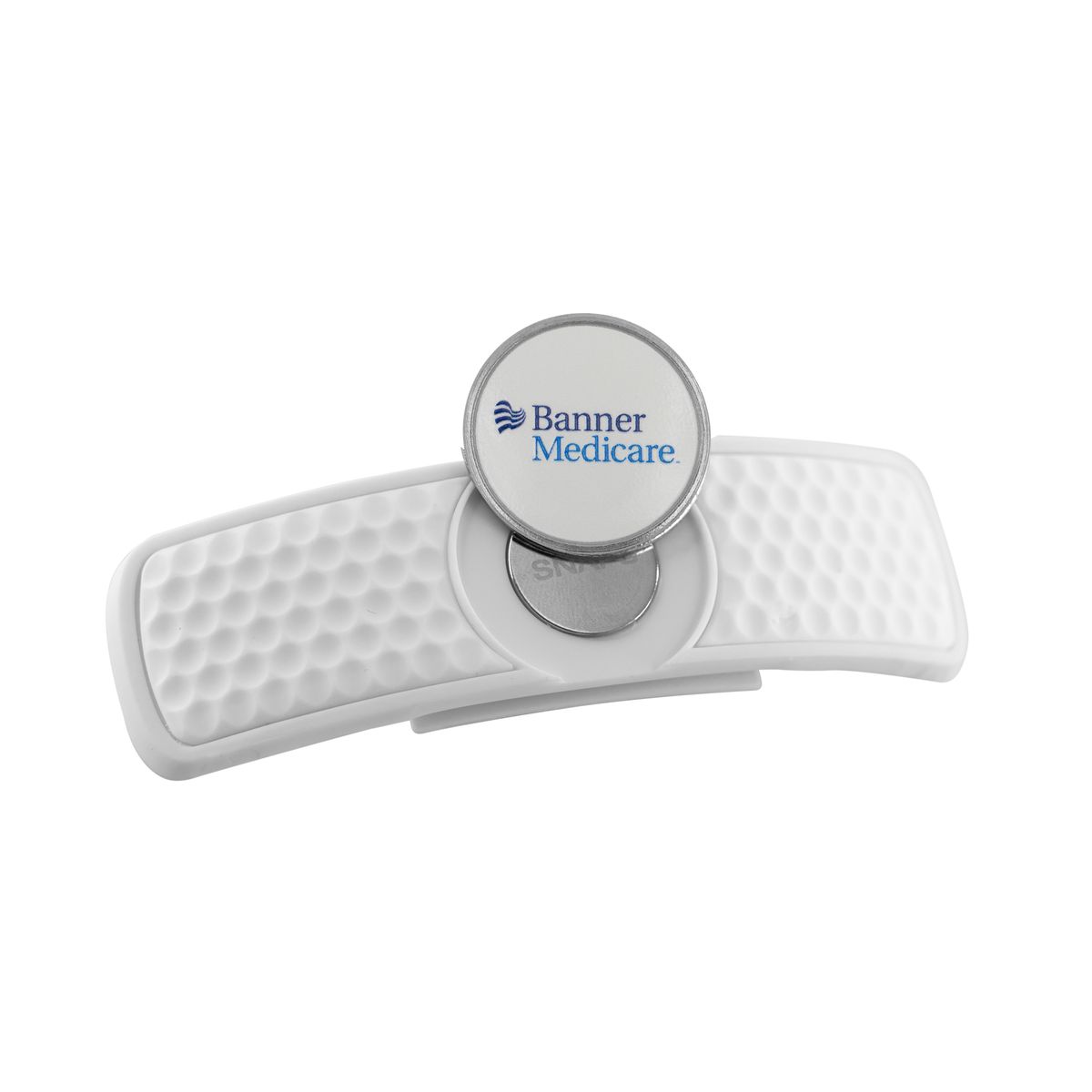 Crafted from soft touch rubberized ABS, SNAPS features golf ball textured silicone inlays and a full color textured removable ball marker. The light weight design slides easily onto most hat straps for comfortable all day wear.
